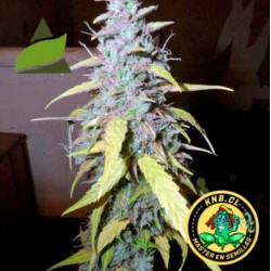 Tiene las hojas anchas de un verde intenso y cogollos gruesos con mucha resina.